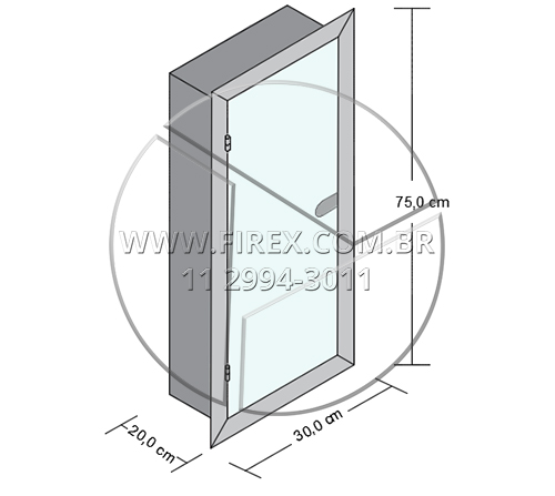 Informações Técnicas: Abrigo para Extintor em Aço Inox de Embutir 75x30x20 cm com Porta em Vidro