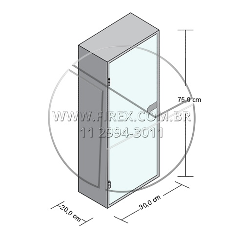 Informações Técnicas: Abrigo para Extintor em Aço Inox de Sobrepor 75x30x20 cm com Porta em Vidro