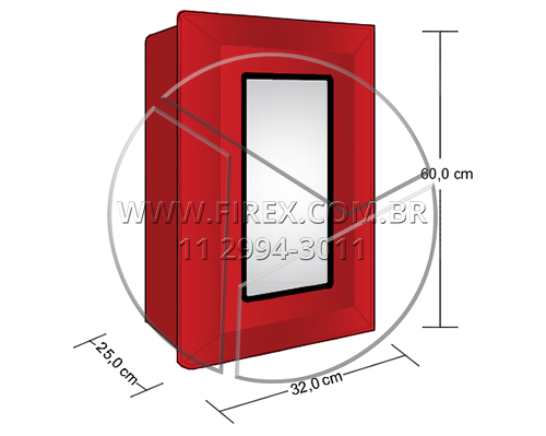 Informações Técnicas: Abrigo para extintor em fibra 60X32X25 CM