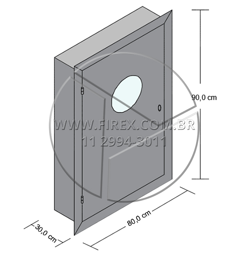 Informações Técnicas: Abrigo para Mangueira (Hidrante) em Aço Inox de Embutir 90x80x30 cm