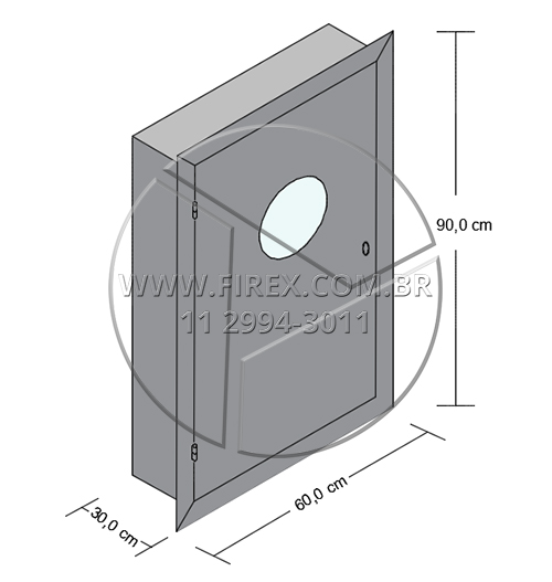 Informações Técnicas: Abrigo para Mangueira (Hidrante) em Aço Inox de Embutir 90x60x30 cm