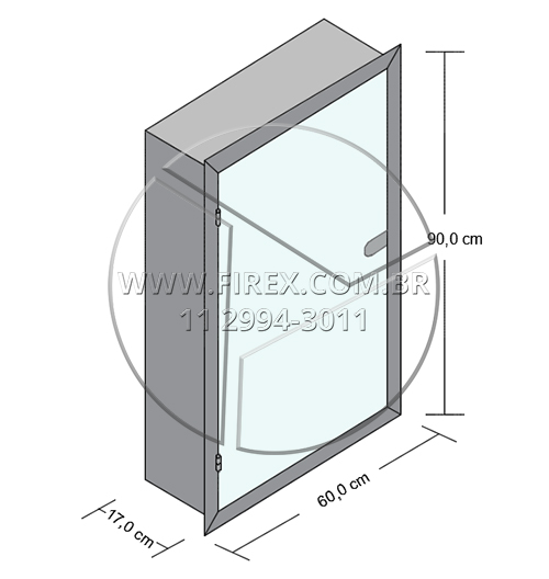 Informações Técnicas: Abrigo para Mangueira (Hidrante) em Aço Inox de Embutir 90x60x17 cm Porta em Vidro