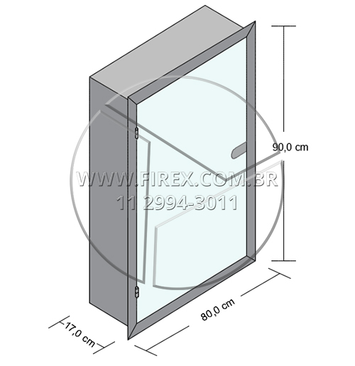 Informações Técnicas: Abrigo para Mangueira (Hidrante) em Aço Inox de Embutir 90x80x17 cm Porta em Vidro