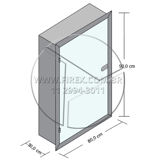 Informações Técnicas: Abrigo para Mangueira (Hidrante) em Aço Inox de Embutir 90x80x30 cm Porta em Vidro