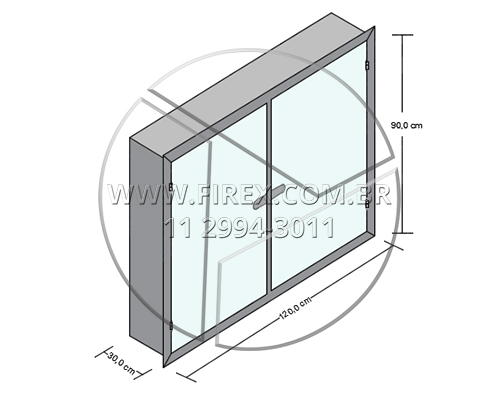 Informações Técnicas: Abrigo para Mangueira (Hidrante) Duplo em Aço Inox de Embutir 90x120x30 cm Porta em Vidro