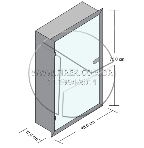 Informações Técnicas: Abrigo para Mangueira (Hidrante) em Aço Inox de Embutir 75x45x17 cm Porta em Vidro
