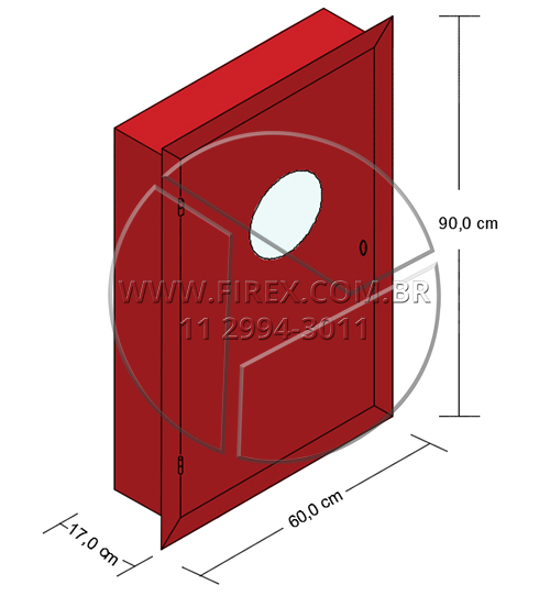 Informações Técnicas: Abrigo para Mangueira (Hidrante) em Chapa de Aço Embutir 90x60x17 cm