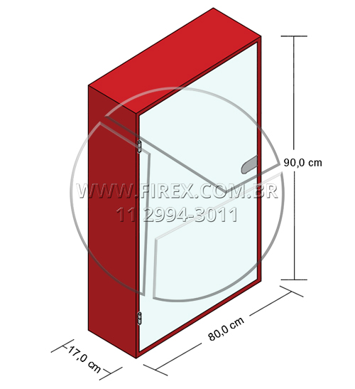 Informações Técnicas: Abrigo para Mangueira (Hidrante) em Chapa de Aço Sobrepor com Porta em Vidro 90x80x17 cm