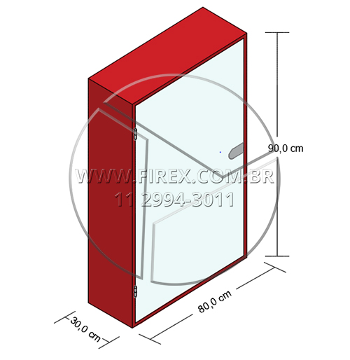 Informações Técnicas: Abrigo para Mangueira (Hidrante) em Chapa de Aço Sobrepor com Porta em Vidro 90x80x30 cm