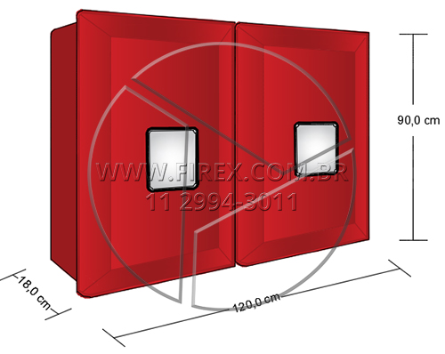 Informações Técnicas: Abrigo para Mangueira (Hidrante) 90X120X18 CM em Fibra de Vidro Com Suporte Duplo