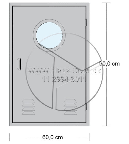 Requadro para mangueira (Hidrante), fabricado em chapa de aço inoxidável (INOX). Porta composta por ventilação frontal, dobradiças e fecho tipo engate rápido para facilitar a abertura e visor em acrílico ou acetato, ambas com adesivo “INCÊNDIO”.