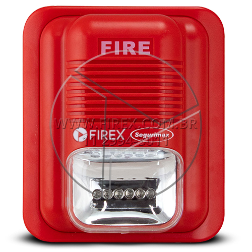 Sirene (sonora)eletrônica endereçável com sinalizador visual. Tensão de operação 20 a 30 Vcc com grau de proteçãoIP 20; temperatura de operação: 0ºC a 55ºC. Potência acústica de >90dB/m a 1 metro; sinalização visual frequência: 1,2Hz a 1,8Hz - 5 LEDs brancos de alta potência, pisca a cada 3 segundos. Dimensões: 133x114x45mm na cor vermelha. ligação2 fios x 0,75mm (bitola mínima de acordo com a norma).